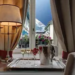 The smoke-free Grand Hotel Des Alpes offers 32 rooms with a mini-fridge-bar, coffee and tea making equipment, and such modern conveniences as high-speed internet and a flat-screen TV with satellite channels. Bedrooms come with extra-long beds. Additionally, most rooms look out onto Mont Blanc.